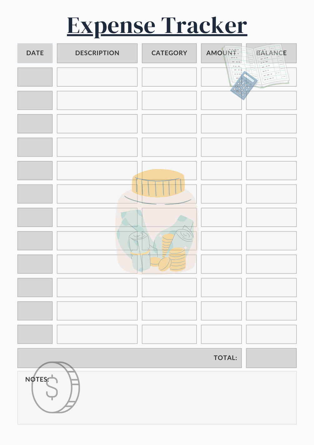 Stay on top of your finances with the Ultimate Expense Tracker. This easy-to-use template helps you record and categorize your expenses, track your spending, and manage your budget effectively. With sections for date, description, category, amount, and balance, you can keep a detailed log of all your financial transactions. Perfect for personal finance management, budgeting, and expense tracking